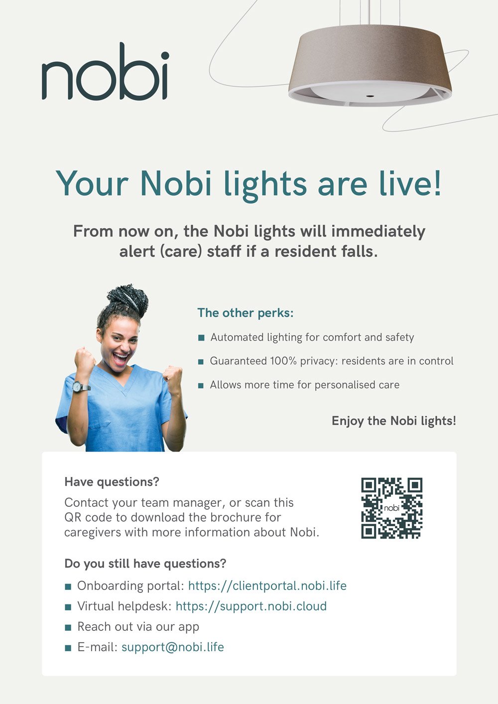 We are happy to support you in using our Nobi lamps. With these tools and materials, you, your colleagues and your residents get the most out of the lamps.
