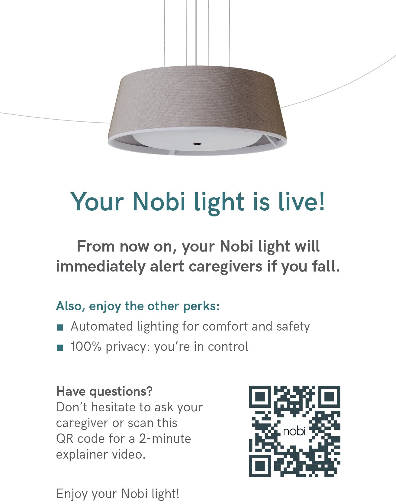 In this info pack, your residents will discover what Nobi is and how the lamps contribute to a safe, happy and quality life. They will also learn more about the different privacy settings so they can make the right choice.